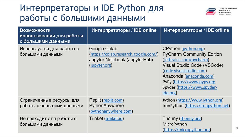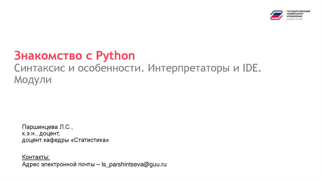 1. Знакомство с Python Синтаксис и особенности. Интерпретаторы и IDE. Модули