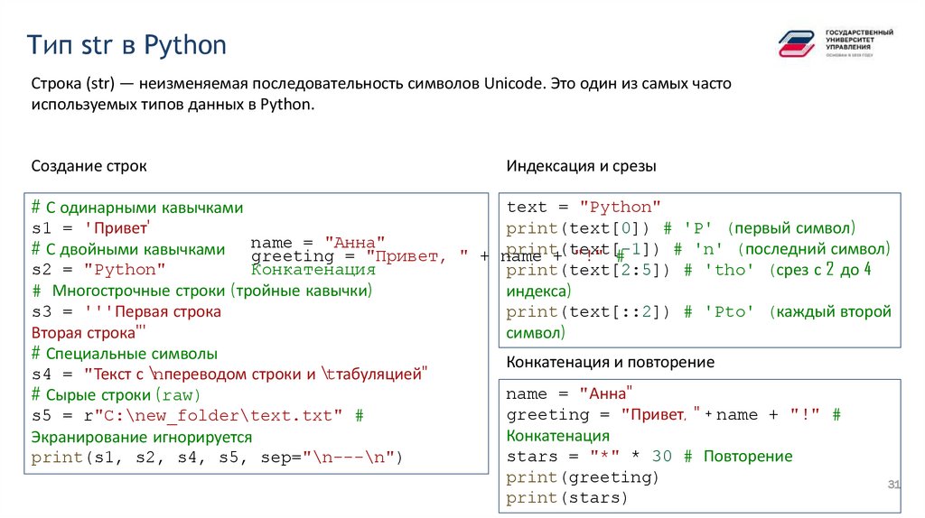 print(text[2:5]) # 'tho' (срез с 2 до 4