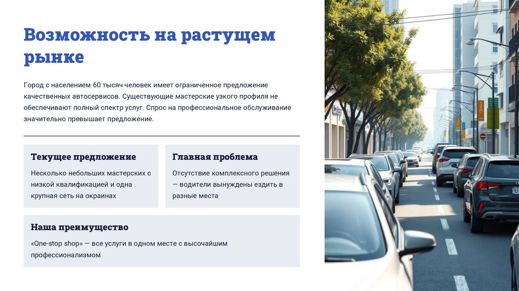 качественных автосервисов. Существующие мастерские узкого профиля не