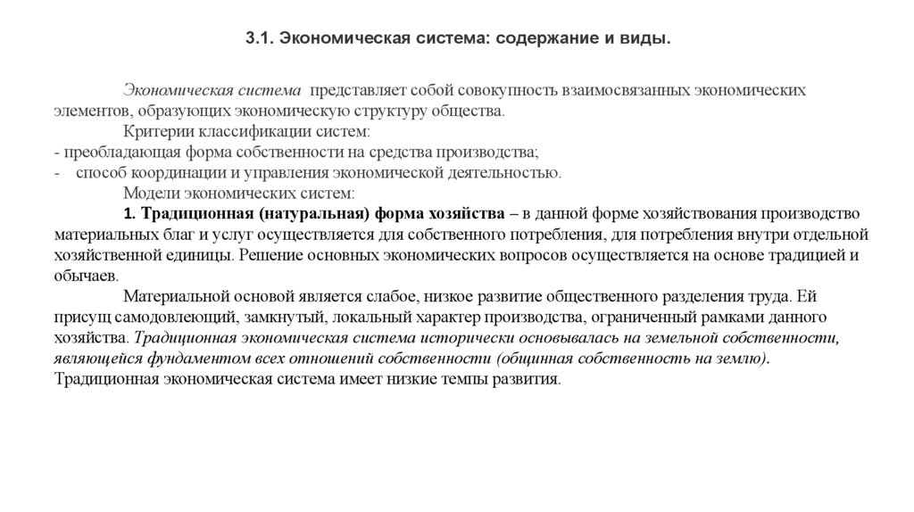 3.1. Экономическая система: содержание и виды.Экономическая система представляет собой совокупность взаимосвязанных экономических