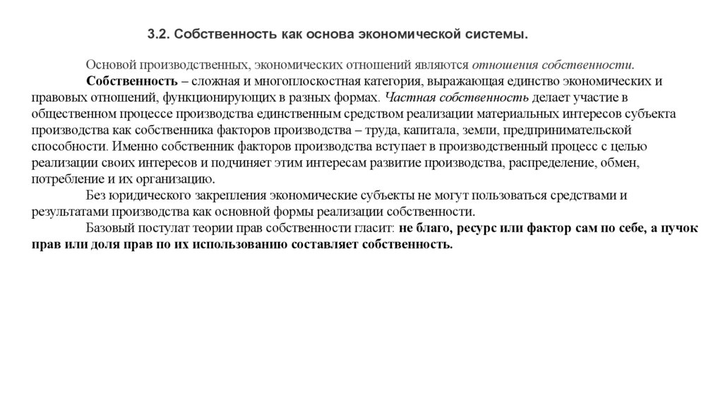 3.2. Собственность как основа экономической системы.Основой производственных, экономических отношений являются отношения собственности.
