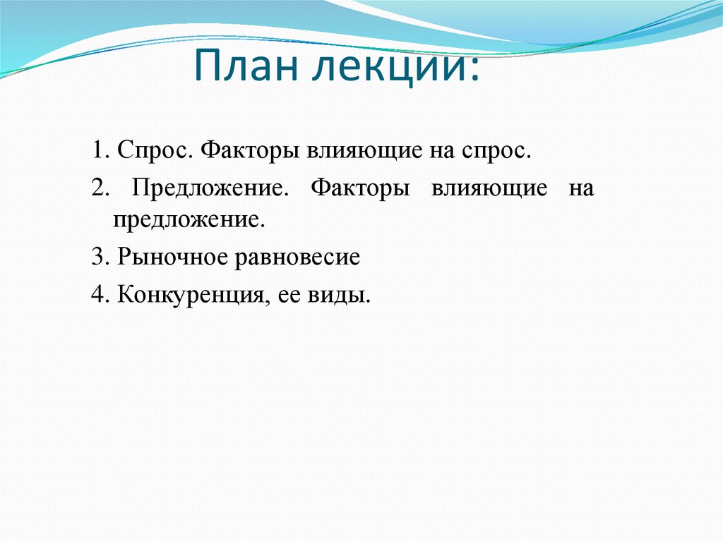 1. Спрос. Факторы влияющие на спрос.2. Предложение. Факторы влияющие на