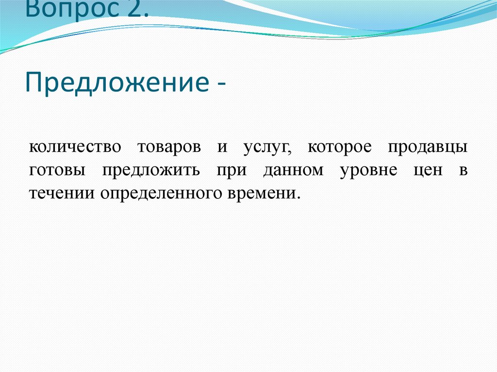 Вопрос 2.Предложение количество товаров и услуг, которое продавцы