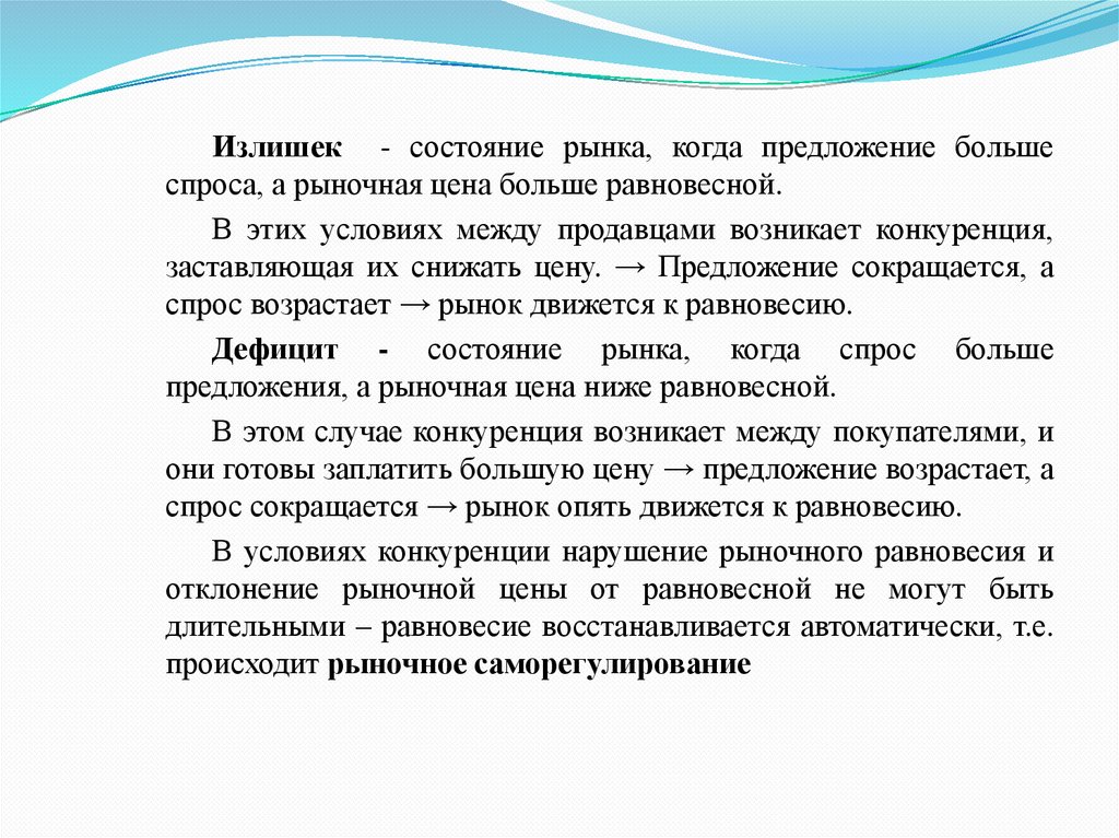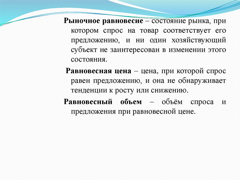 Рыночное равновесие – состояние рынка, прикотором спрос на товар соответствует его