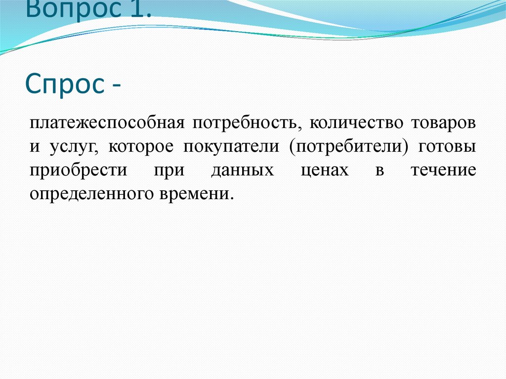 Вопрос 1.Спрос платежеспособная потребность, количество товаров