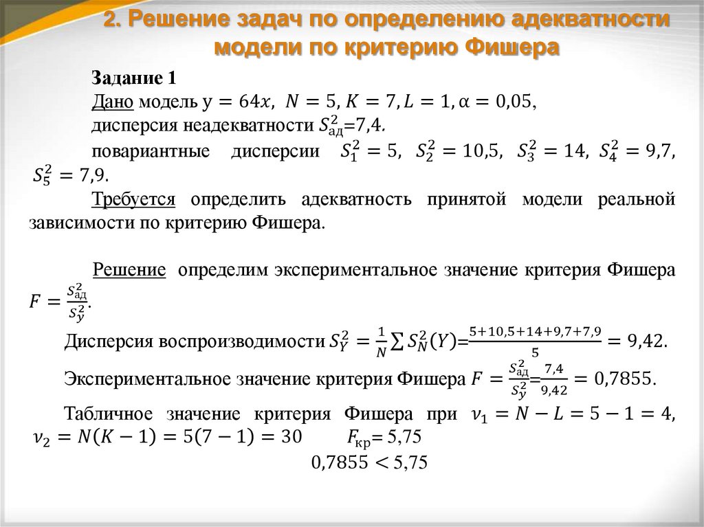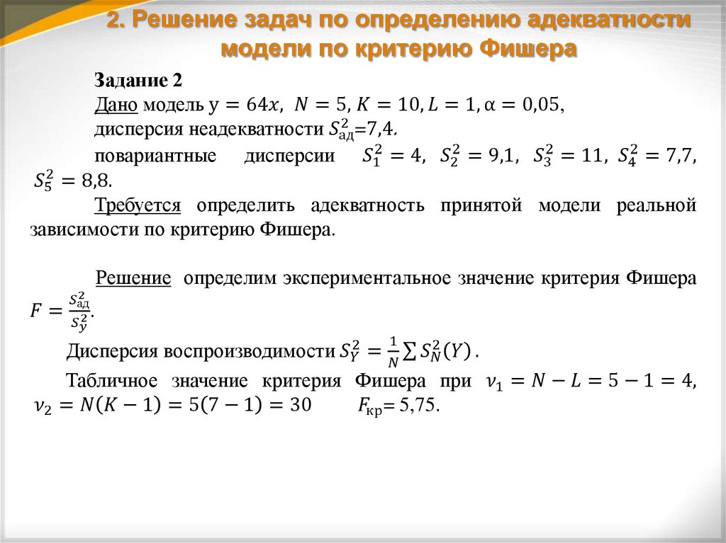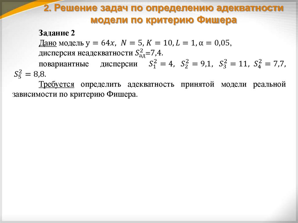 2. Решение задач по определению адекватности модели по