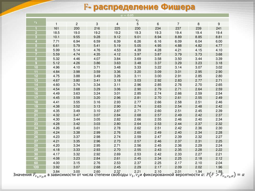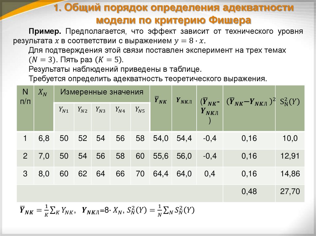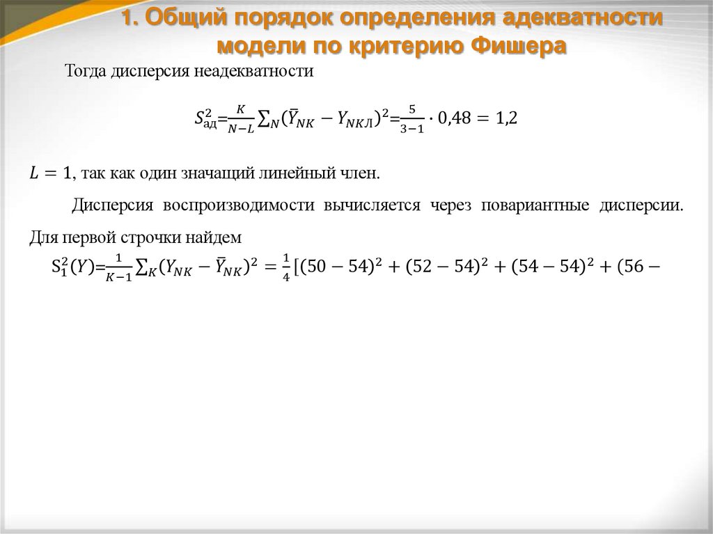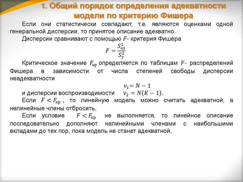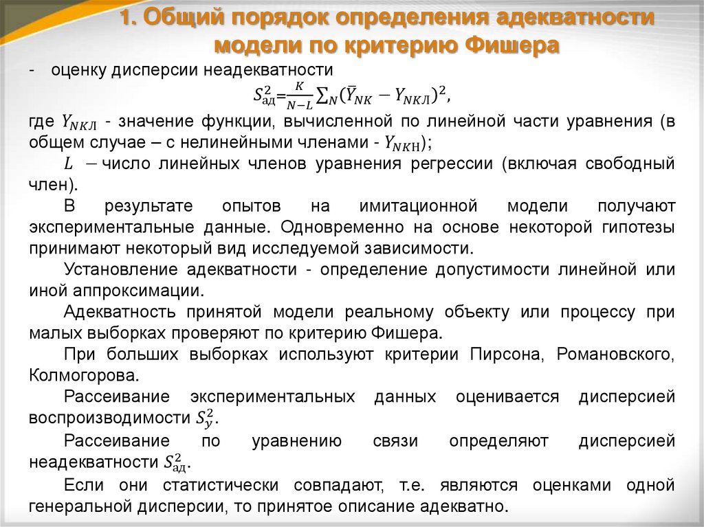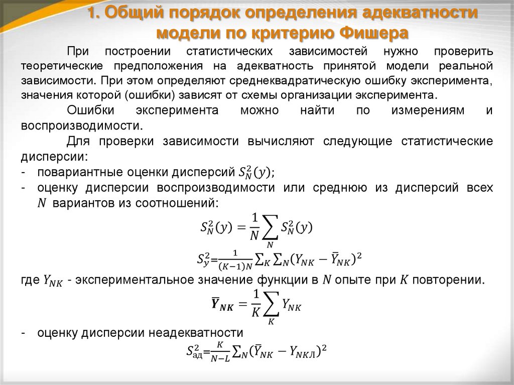 1. Общий порядок определения адекватностимодели по критерию Фишера