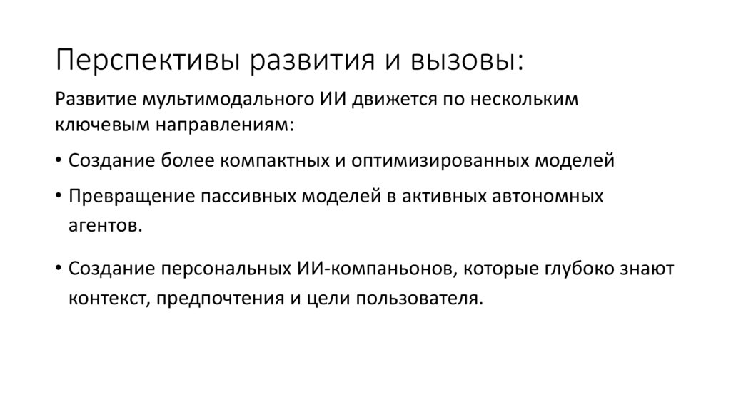 Развитие мультимодального ИИ движется по несколькимключевым направлениям: