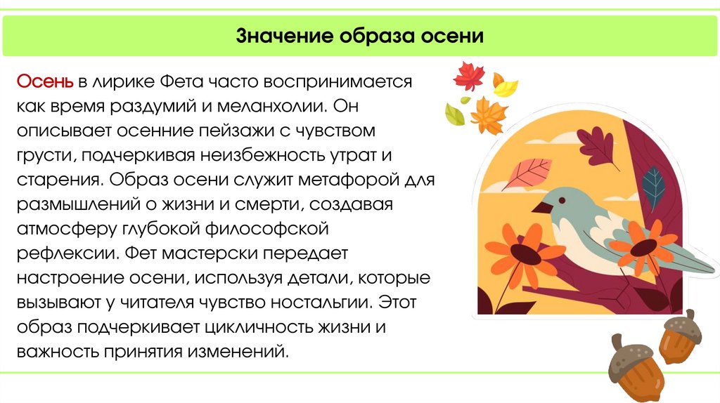 Значение образа осениОсень в лирике Фета часто воспринимается