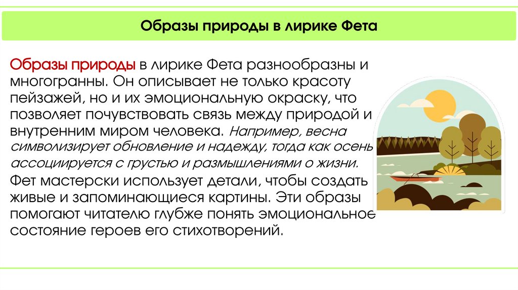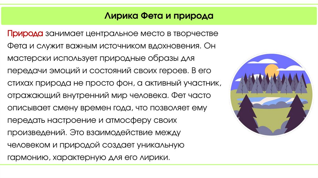 Лирика Фета и природаПрирода занимает центральное место в творчестве