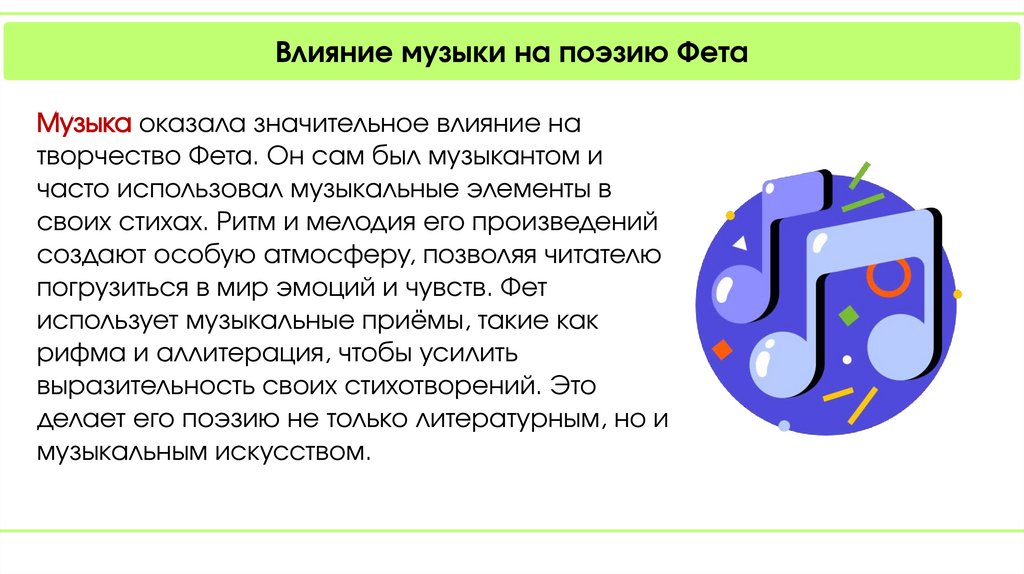 Влияние музыки на поэзию ФетаМузыка оказала значительное влияние на