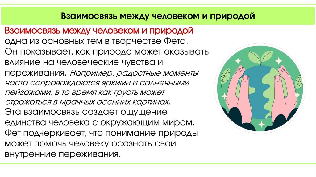 Взаимосвязь между человеком и природойВзаимосвязь между человеком и природой —