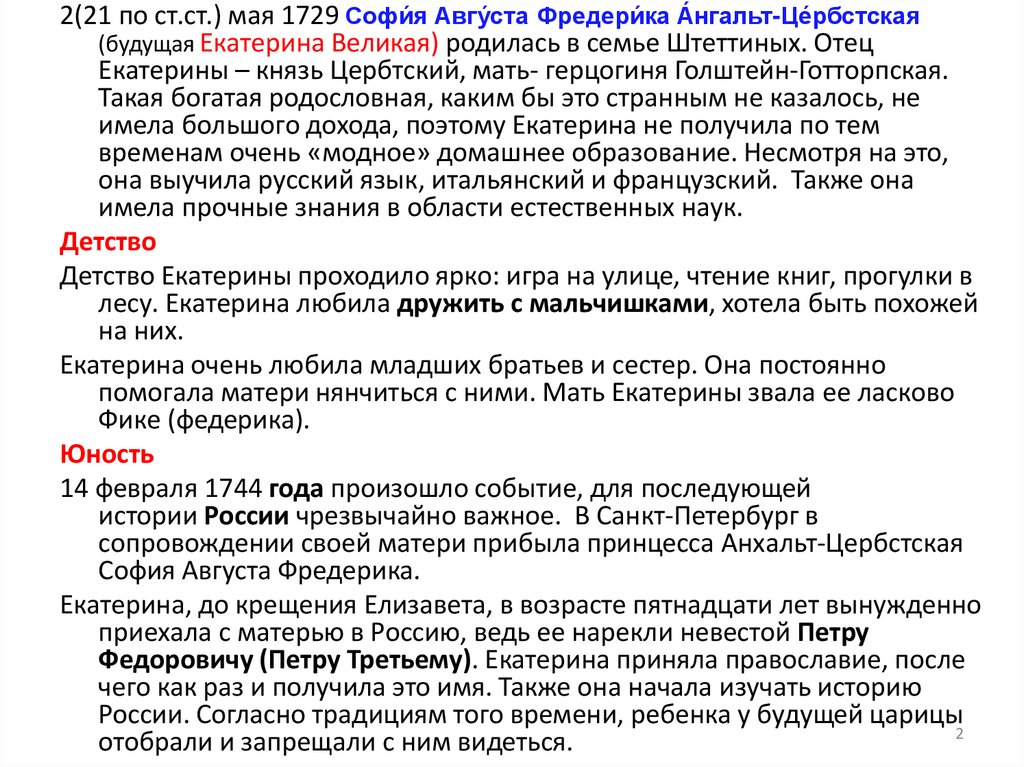 1. ЕКАТЕРИНА II ВЕЛИКАЯ – РОССИЙСКАЯ ИМПЕРАТРИЦА