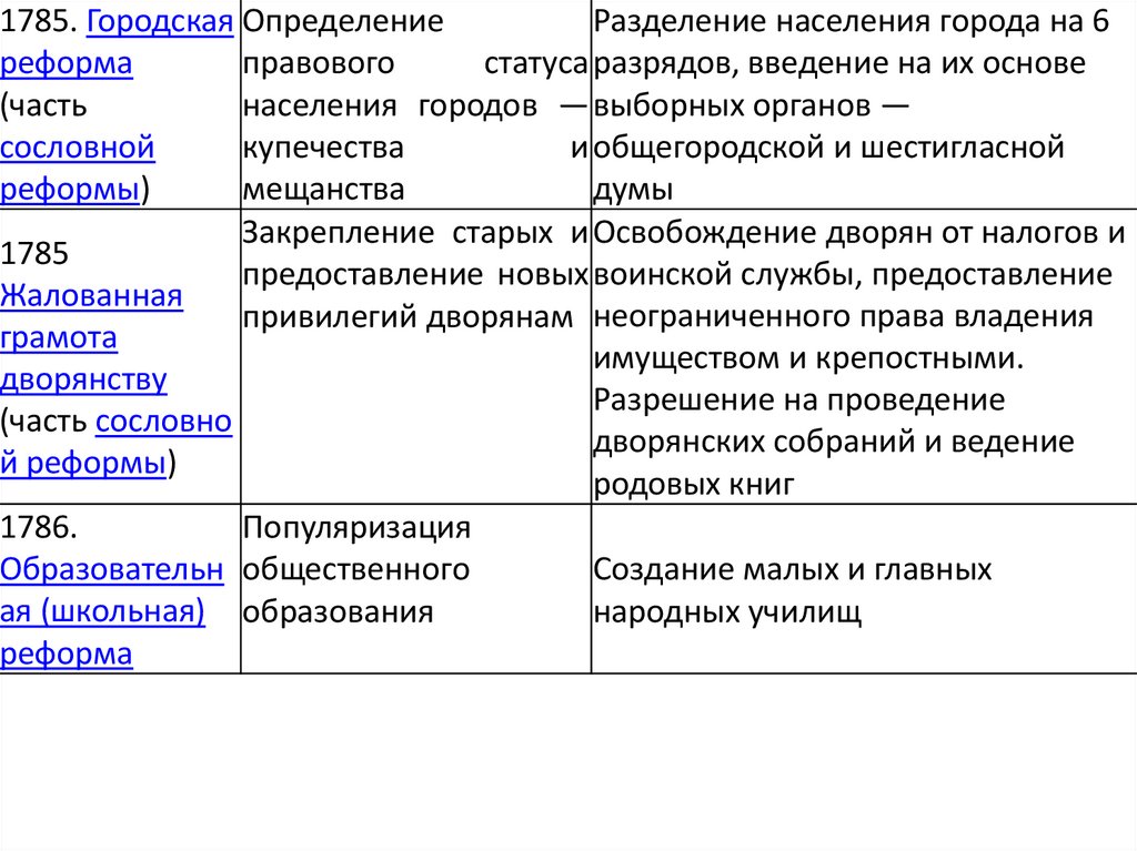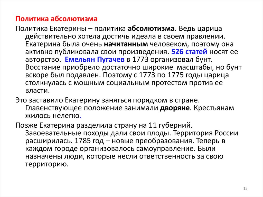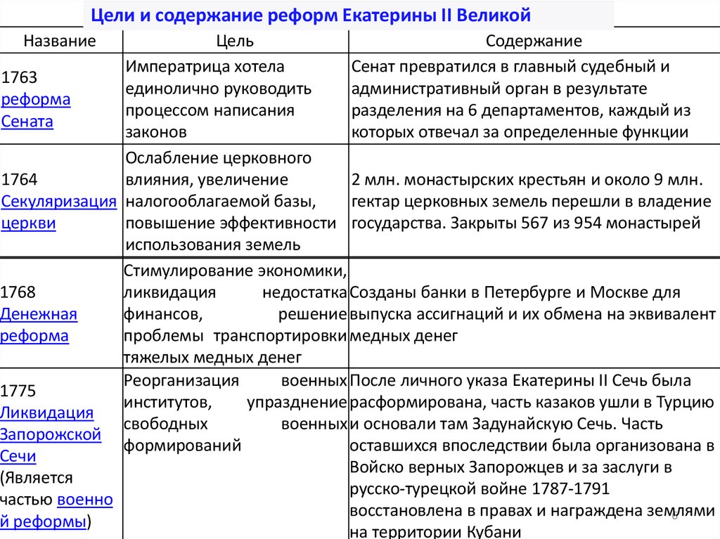 Цели и содержание реформ Екатерины II ВеликойНазвание