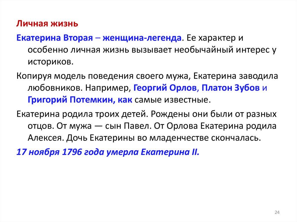 любовников. Например, Георгий Орлов, Платон Зубов и