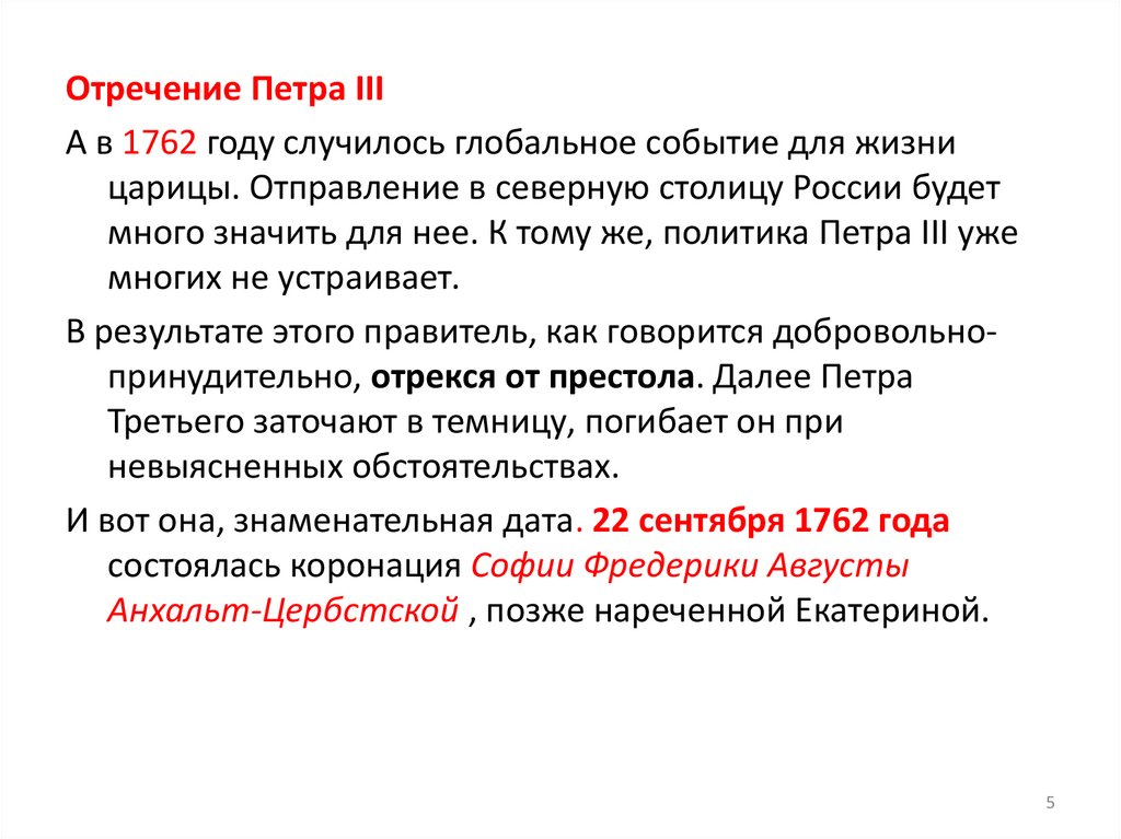 Отречение Петра IIIА в 1762 году случилось глобальное событие для жизни