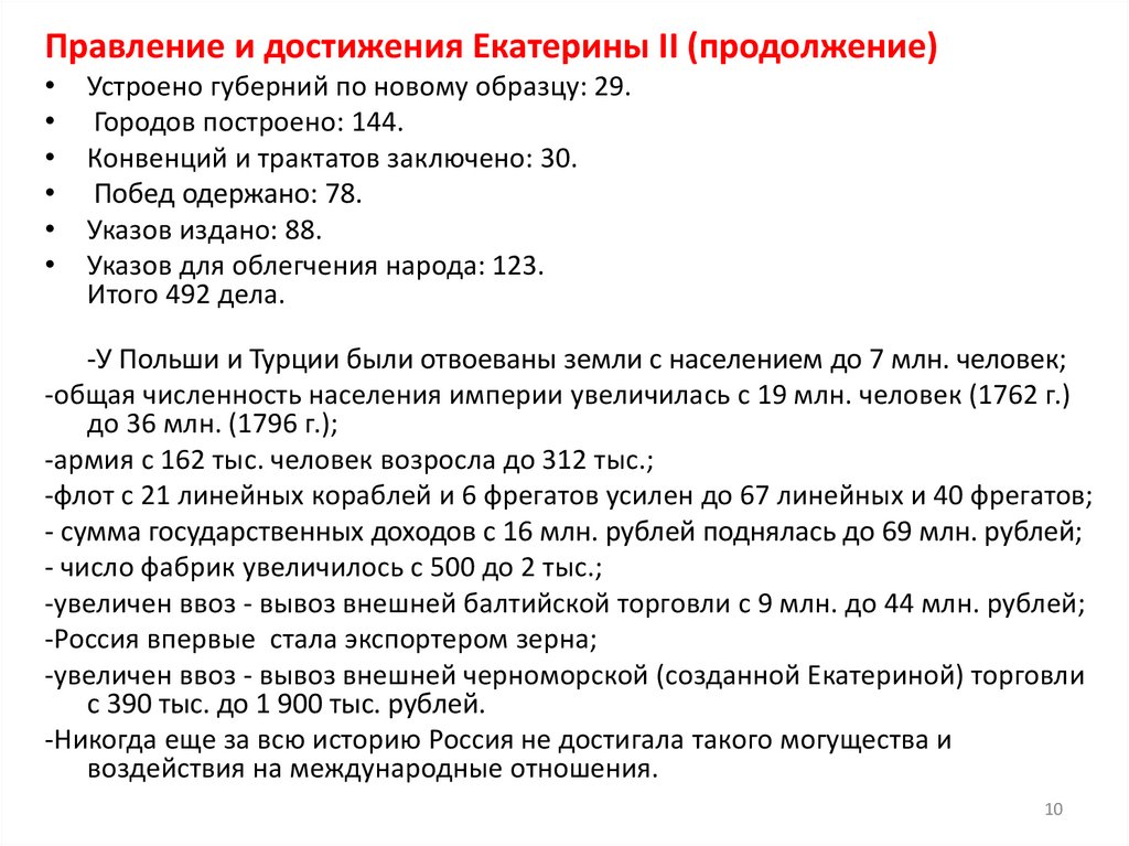 с населением до 7 млн человек. Екатерина Великая утвердилась