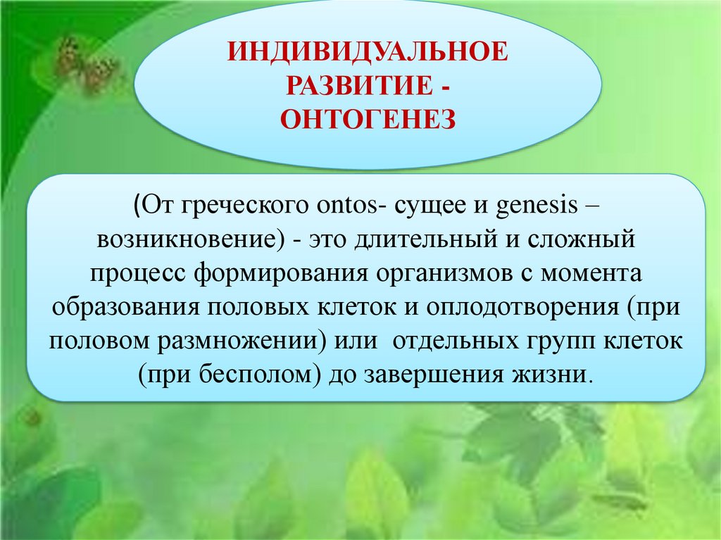 ИНДИВИДУАЛЬНОЕРАЗВИТИЕ ОНТОГЕНЕЗ