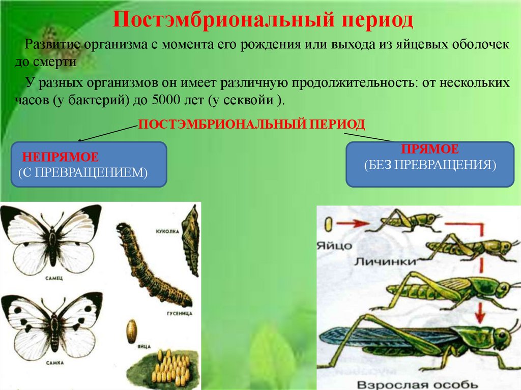 Развитие организма с момента его рождения или выхода из яйцевых оболочекдо смерти