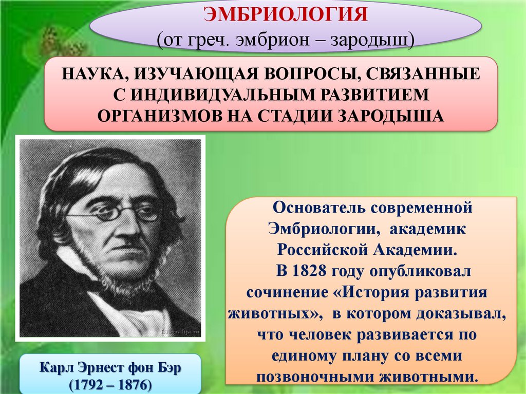 Эмбриологии, академик