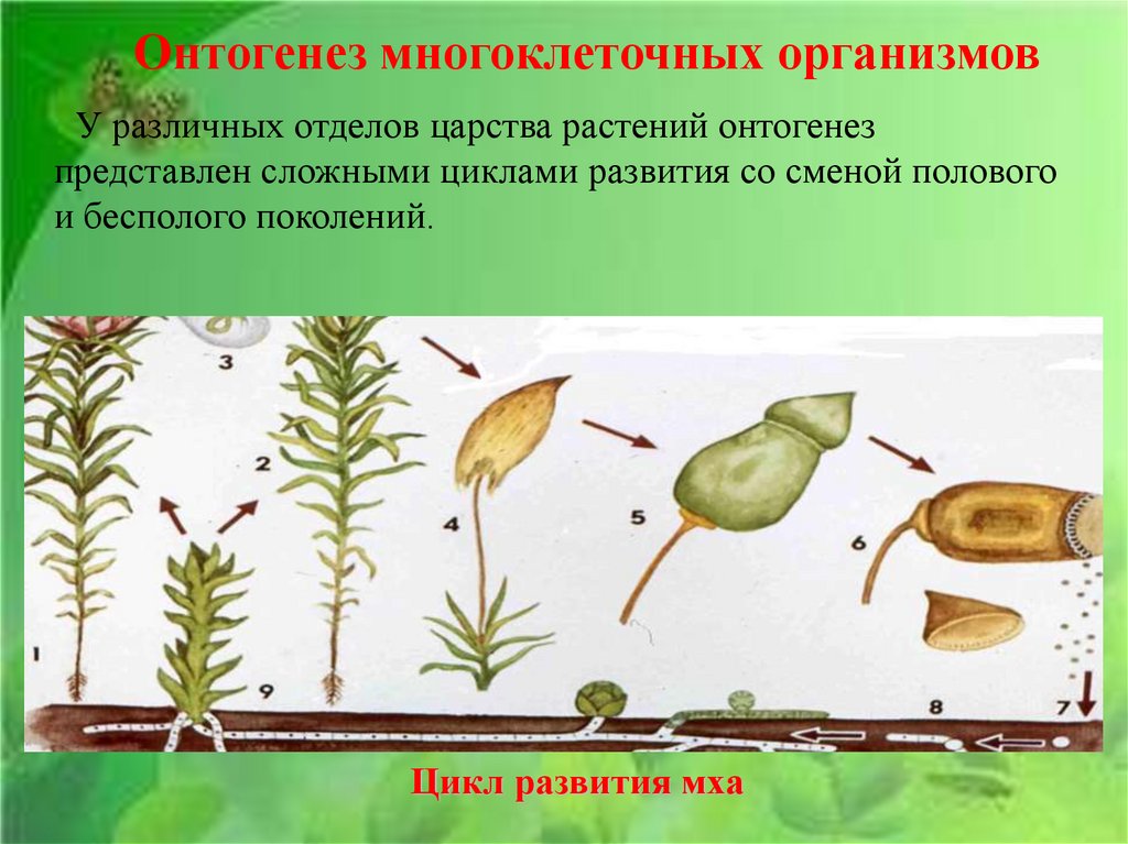 Онтогенез многоклеточных организмовУ различных отделов царства растений онтогенез