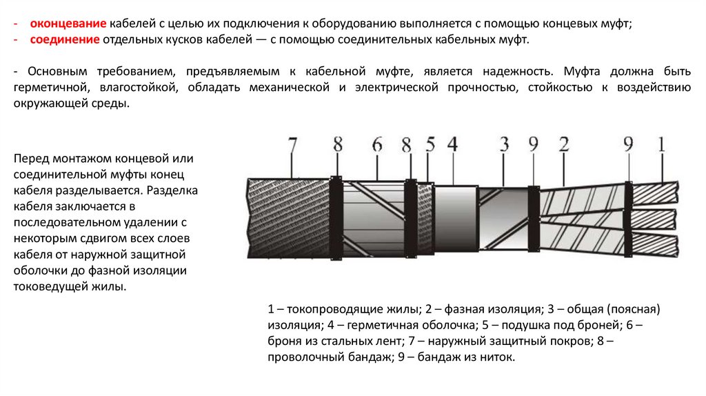 - Основным требованием, предъявляемым к кабельной муфте, является надежность. Муфта должна быть