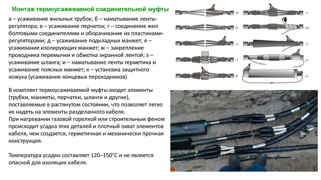 Термоусаживаемые муфты и муфты холодной усадки сохраняют гибкость кабеля, не разрушаются