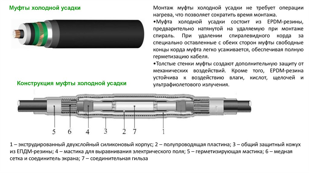 •Муфта холодной усадки состоит из EPDM-резины,