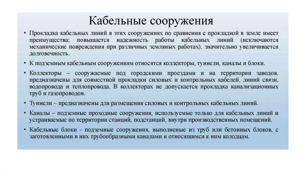 Способы прокладки кабельных линийСпособ прокладки КЛ выбирают в зависимости от числа кабелей,