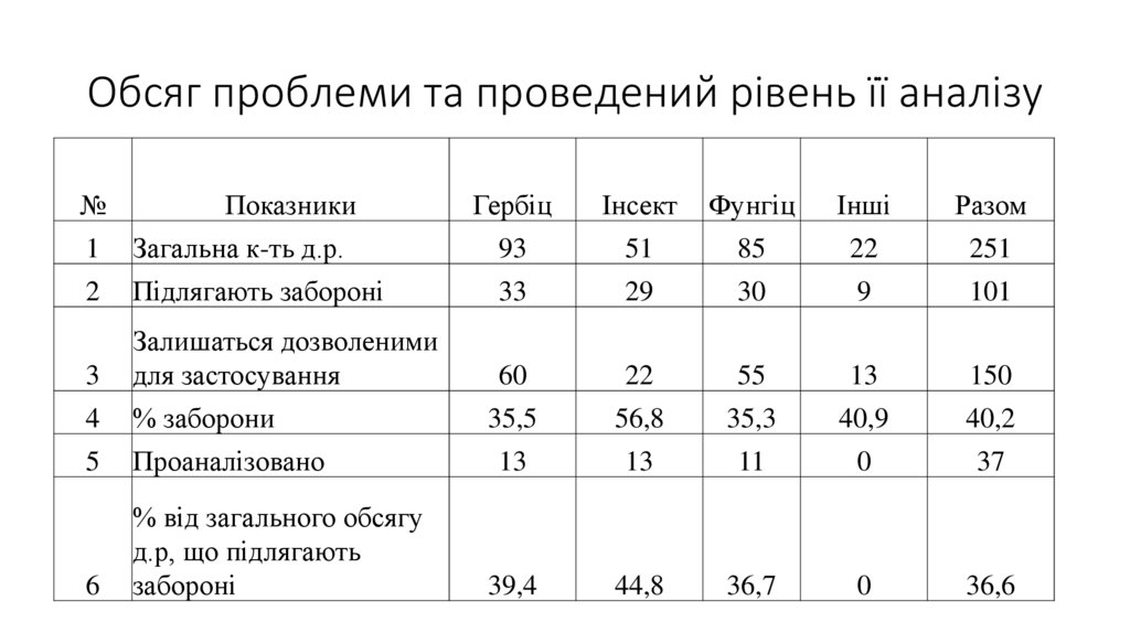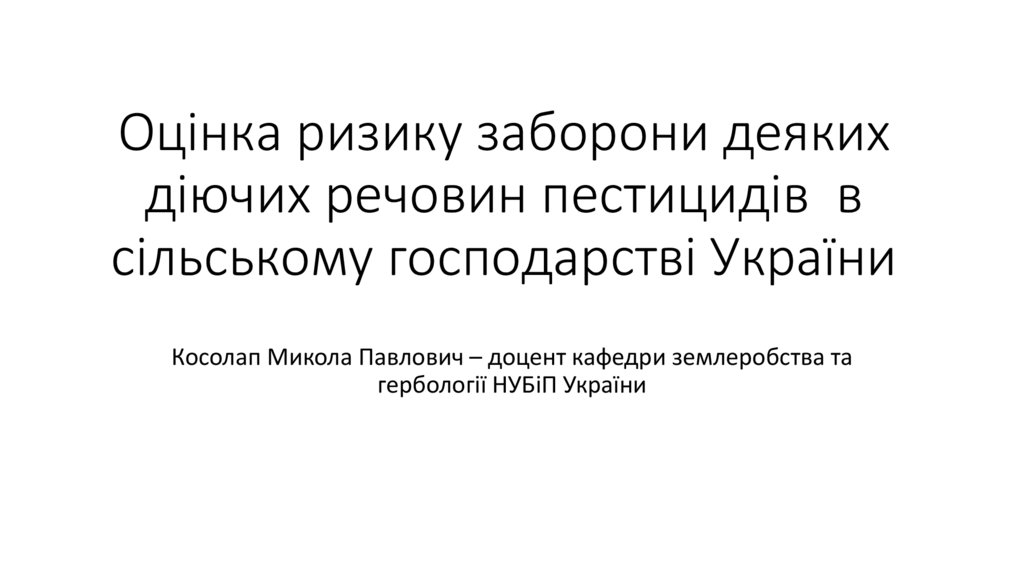 1. Оцінка ризику заборони деяких діючих речовин пестицидів в сільському господарстві України
