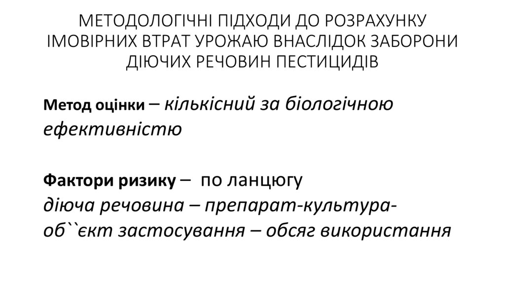 3. МЕТОДОЛОГІЧНІ ПІДХОДИ ДО РОЗРАХУНКУ ІМОВІРНИХ ВТРАТ УРОЖАЮ ВНАСЛІДОК ЗАБОРОНИ ДІЮЧИХ РЕЧОВИН ПЕСТИЦИДІВ