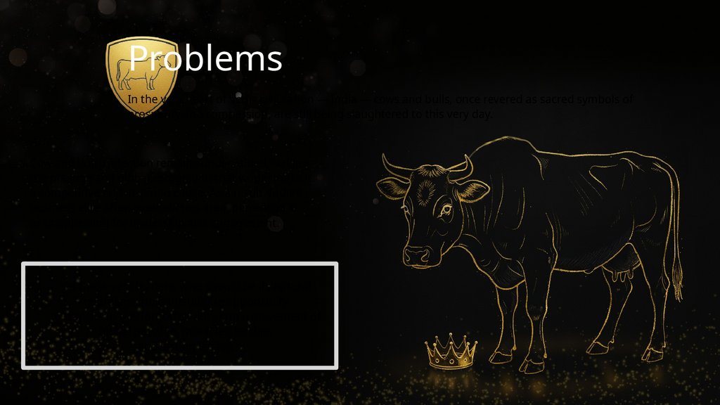 ProblemsIn the very heart of Vedic civilisation — India — cows and bulls, once revered as sacred symbols of