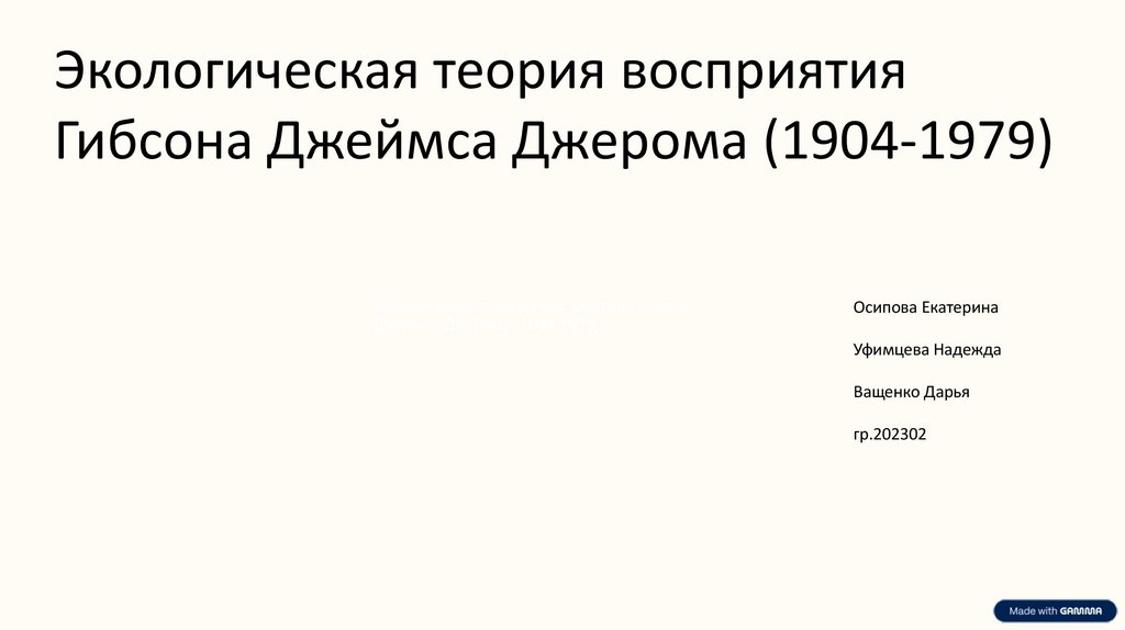 Экологическая теория восприятияГибсона Джеймса Джерома (1904-1979)