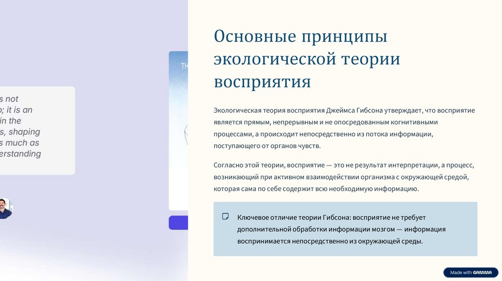 Согласно этой теории, восприятие — это не результат интерпретации, а процесс,