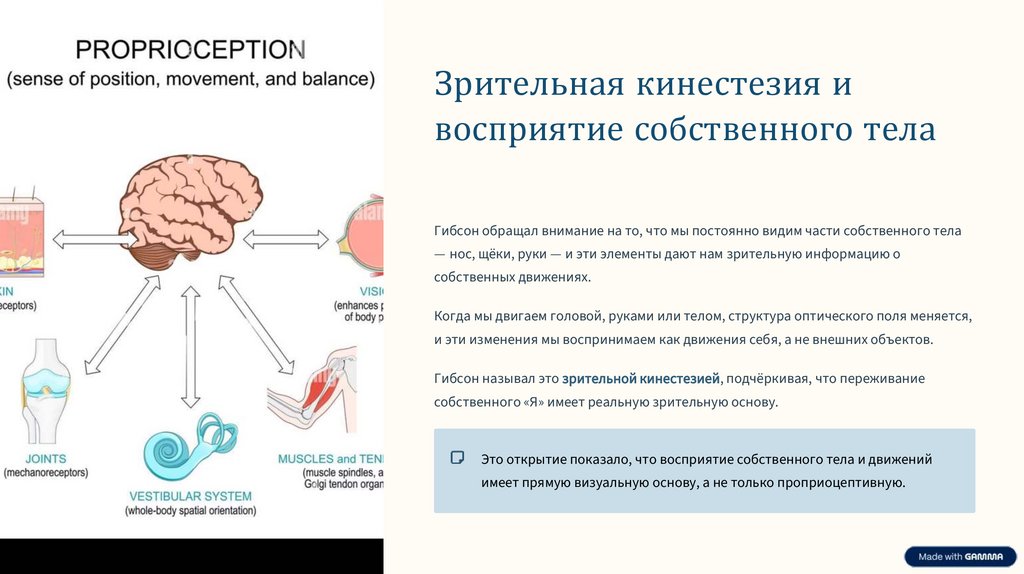 Гибсон называл это зрительной кинестезией, подчёркивая, что переживание