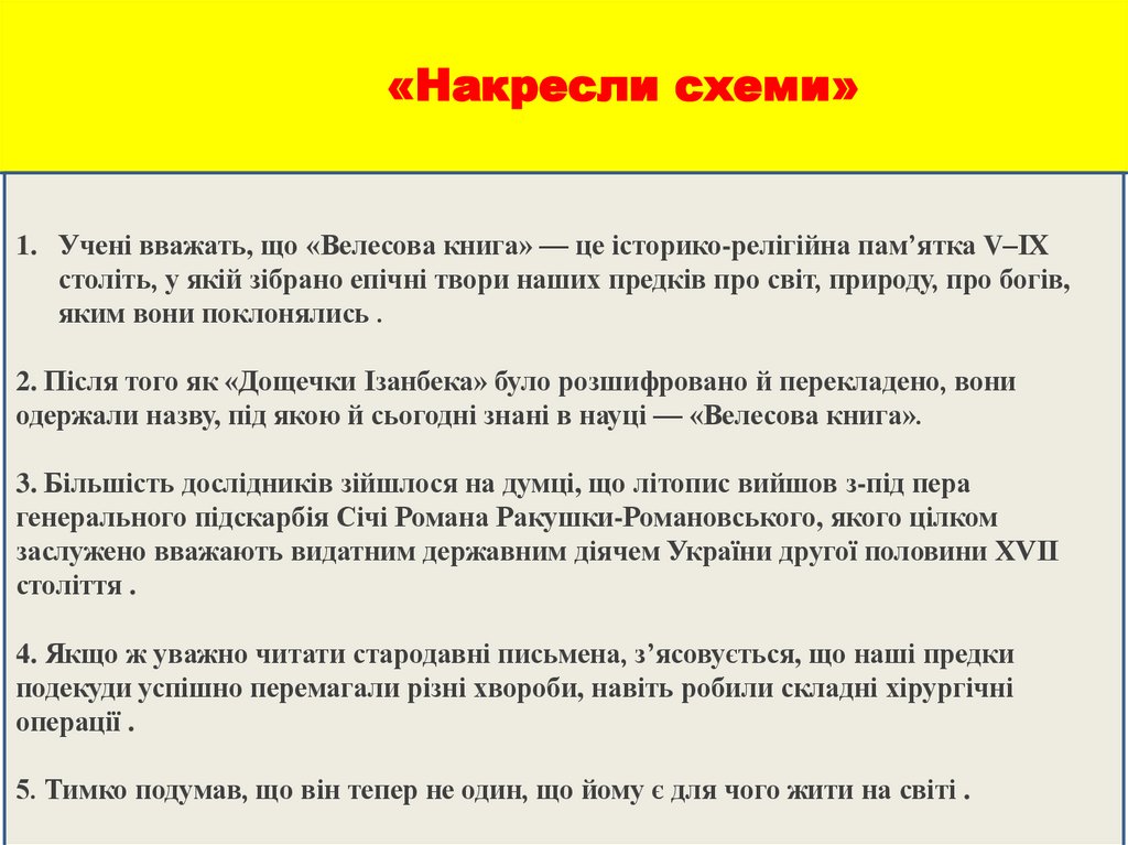 «Накресли схеми»1. Учені вважать, що «Велесова книга» — це історико-релігійна пам’ятка V–ІХ