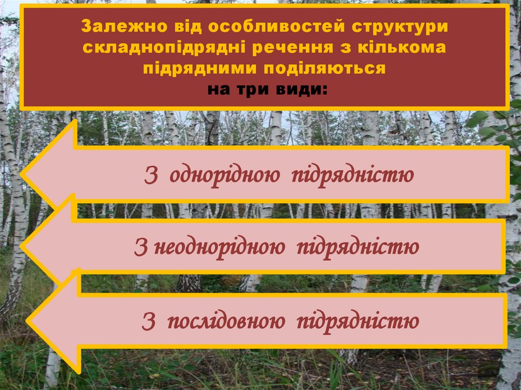 Залежно від особливостей структурискладнопідрядні речення з кількома