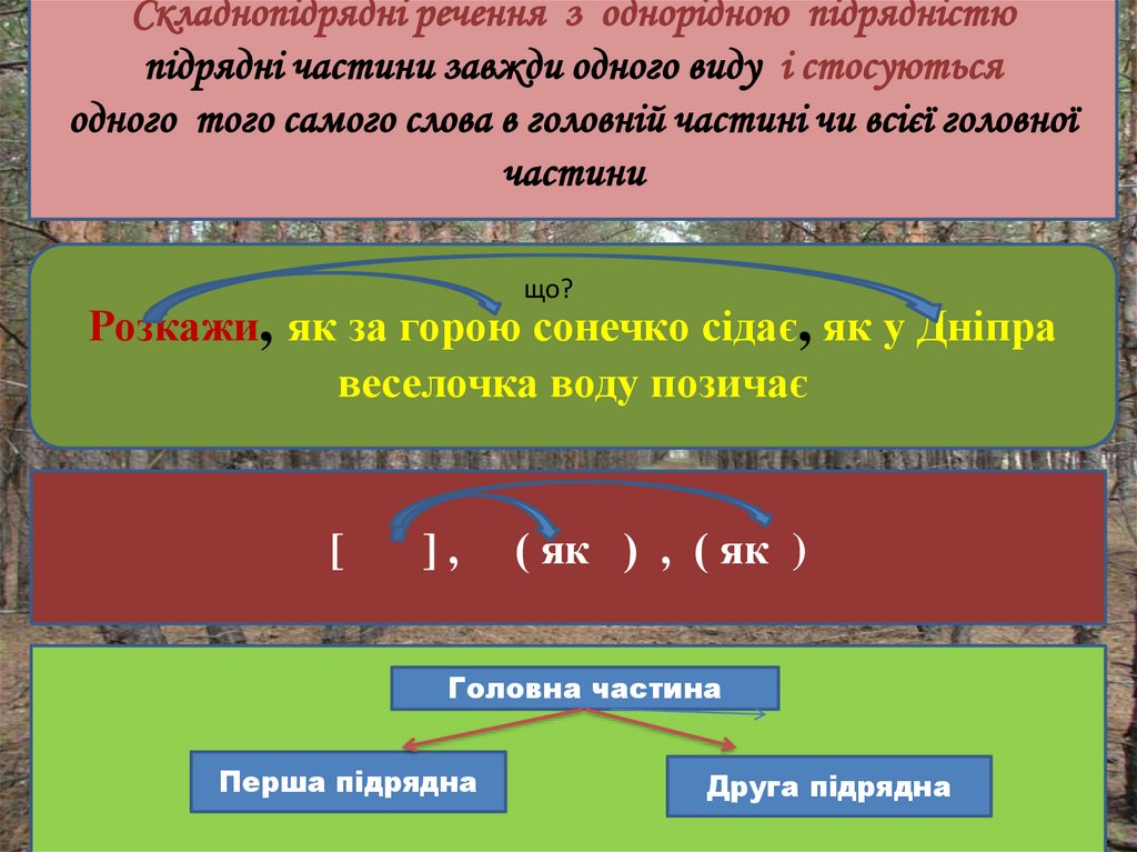 Складнопідрядні речення з однорідною підрядністюпідрядні частини завжди одного виду і стосуються