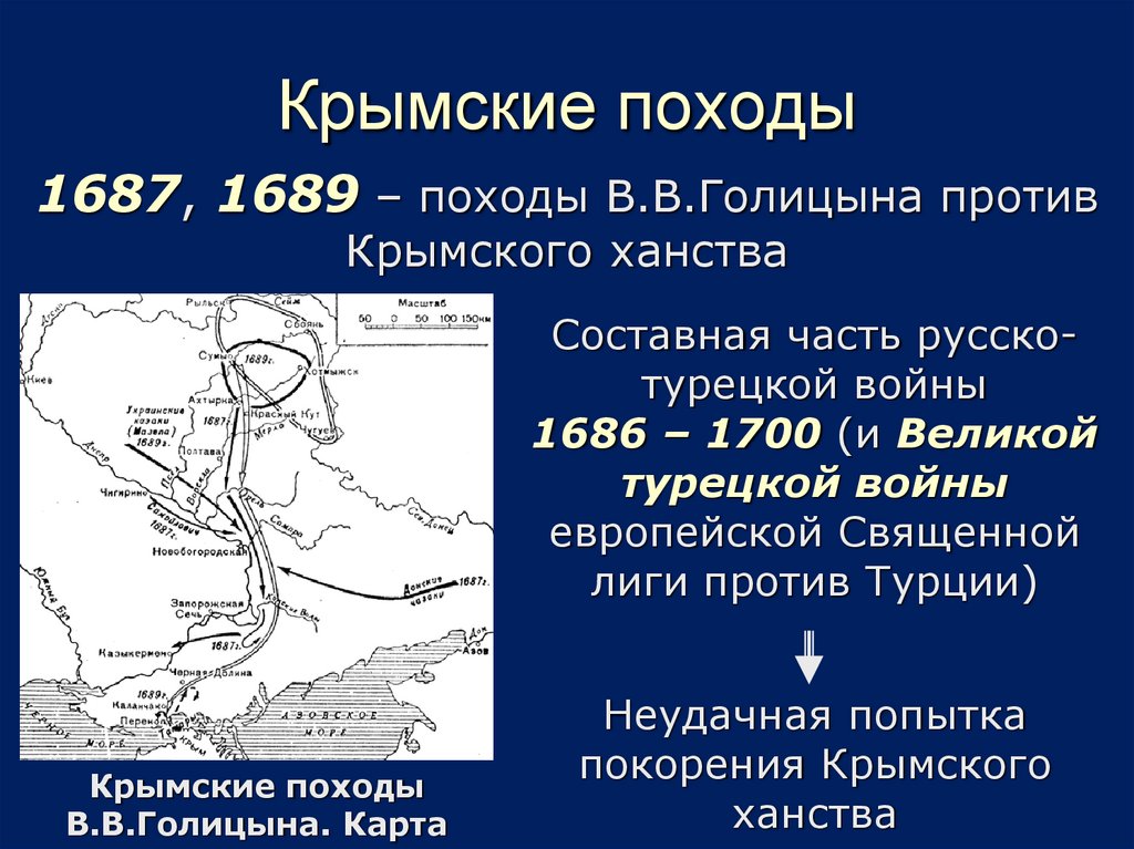 1687, 1689 – походы В.В.Голицына противКрымского ханства