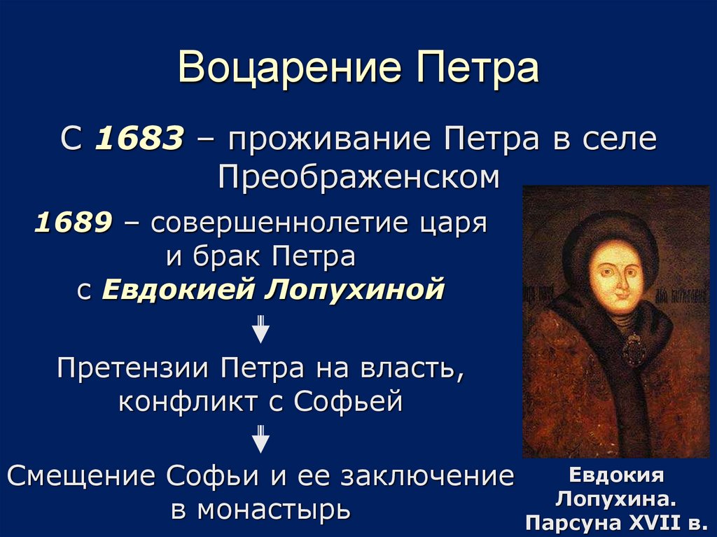 С 1683 – проживание Петра в селеПреображенском