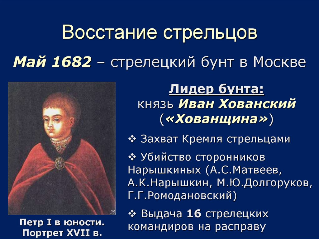 Май 1682 – стрелецкий бунт в МосквеЛидер бунта: