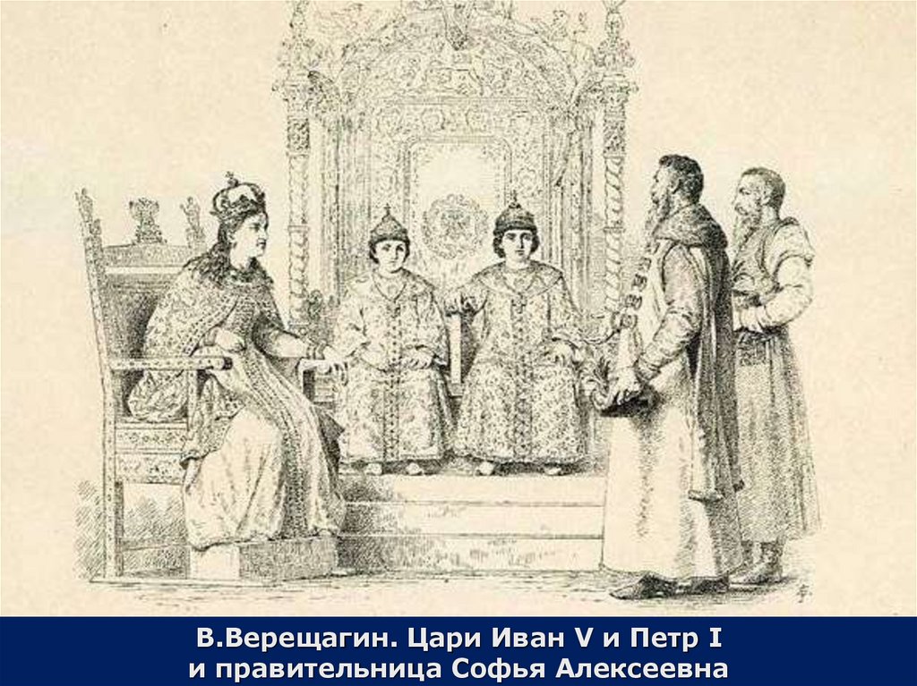 В.Верещагин. Цари Иван V и Петр Iи правительница Софья Алексеевна