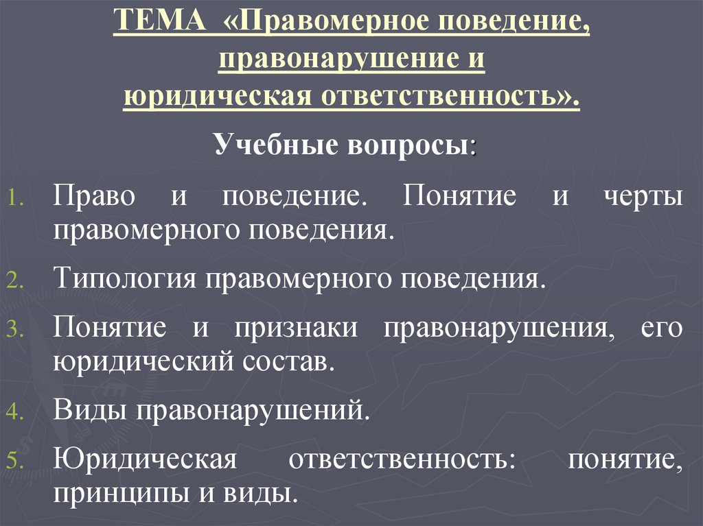 1. ТЕМА «Правомерное поведение, правонарушение и юридическая ответственность».