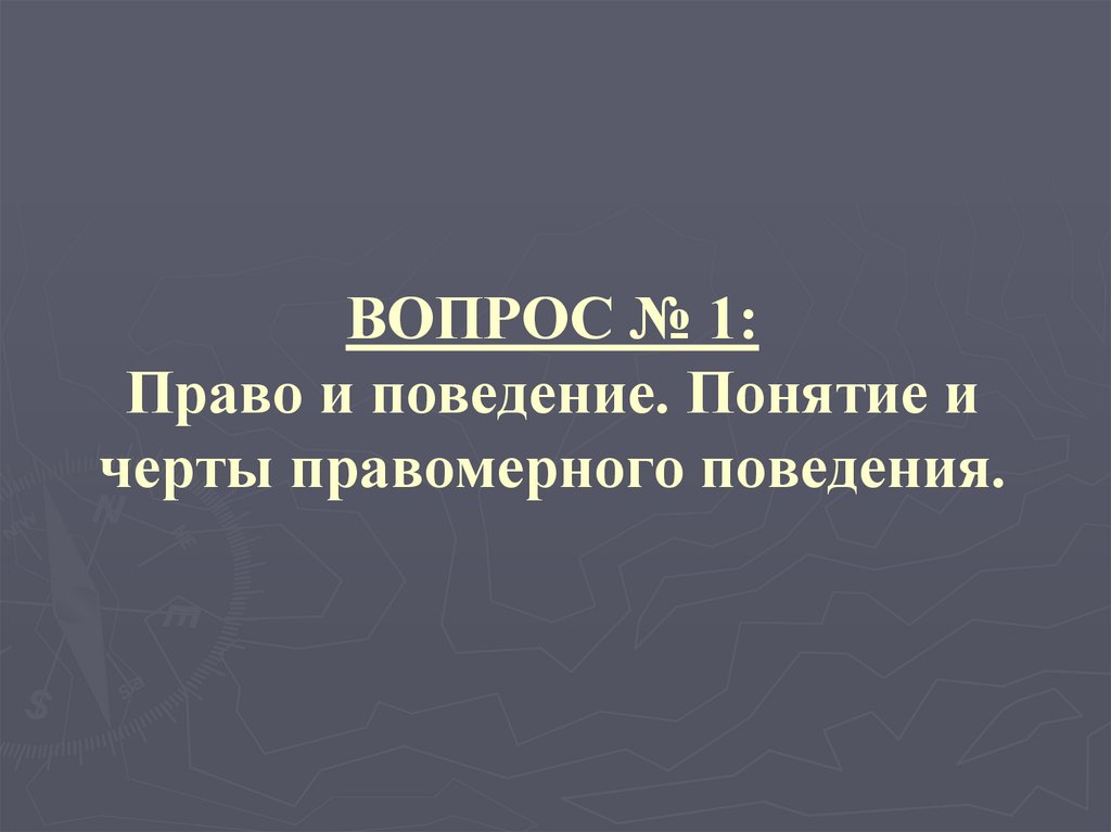 2. ВОПРОС № 1: Право и поведение. Понятие и черты правомерного поведения.