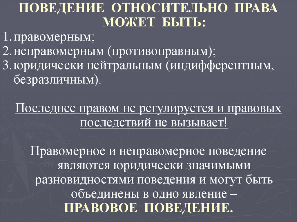 ПОВЕДЕНИЕ ОТНОСИТЕЛЬНО ПРАВАМОЖЕТ БЫТЬ: