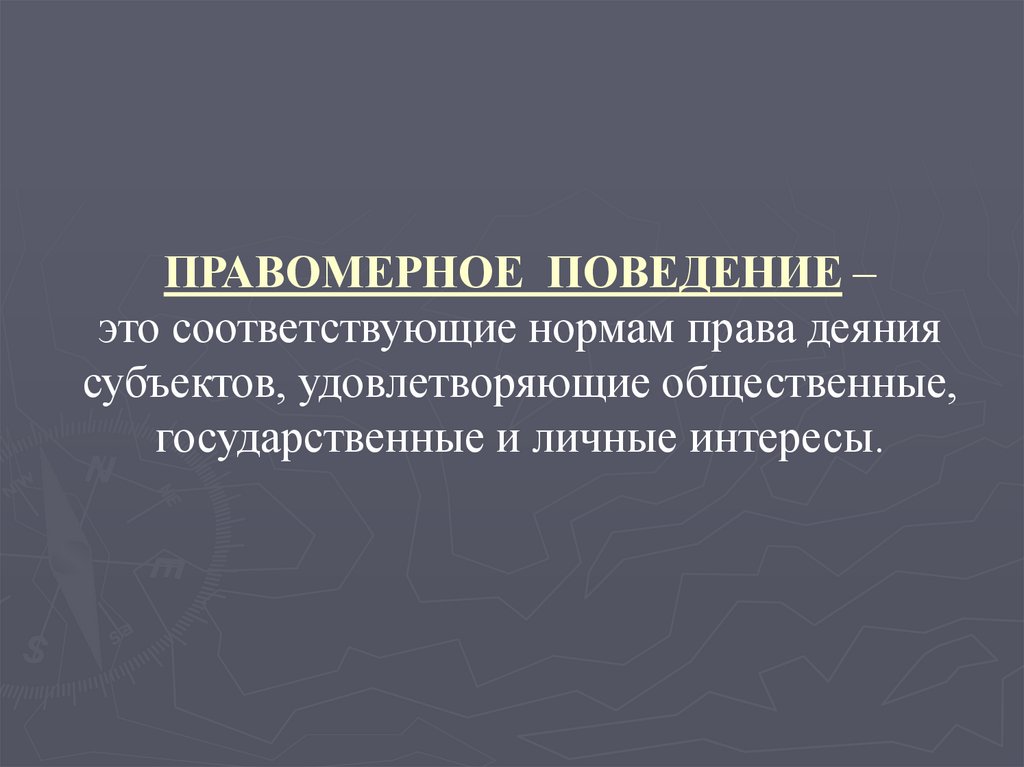 ПРАВОМЕРНОЕ ПОВЕДЕНИЕ –это соответствующие нормам права деяния