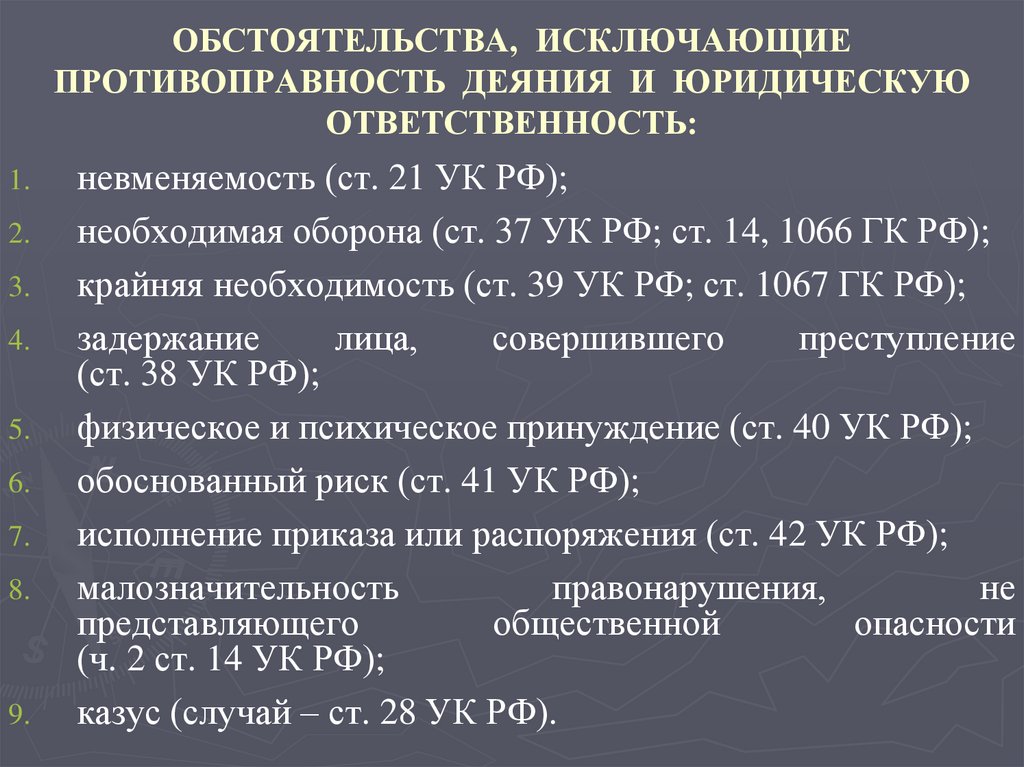 42. ОБСТОЯТЕЛЬСТВА, ИСКЛЮЧАЮЩИЕ ПРОТИВОПРАВНОСТЬ ДЕЯНИЯ И ЮРИДИЧЕСКУЮ ОТВЕТСТВЕННОСТЬ: