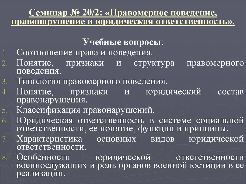 43. Семинар № 20/2: «Правомерное поведение, правонарушение и юридическая ответственность».