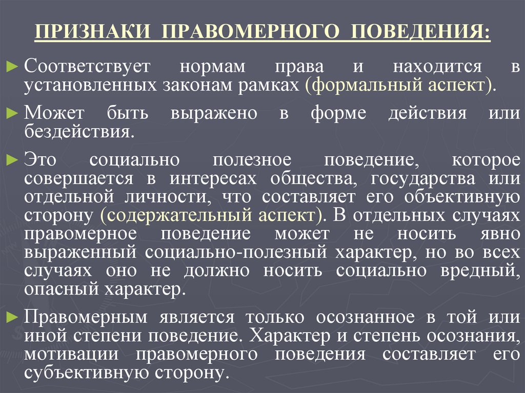 6. ПРИЗНАКИ ПРАВОМЕРНОГО ПОВЕДЕНИЯ: