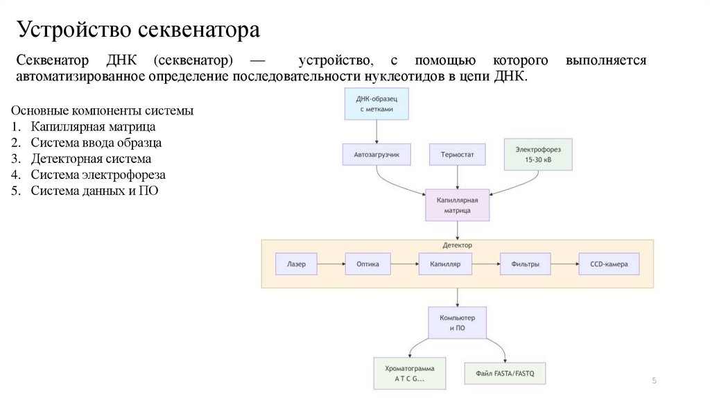 Устройство секвенатораСеквенатор ДНК (секвенатор) —